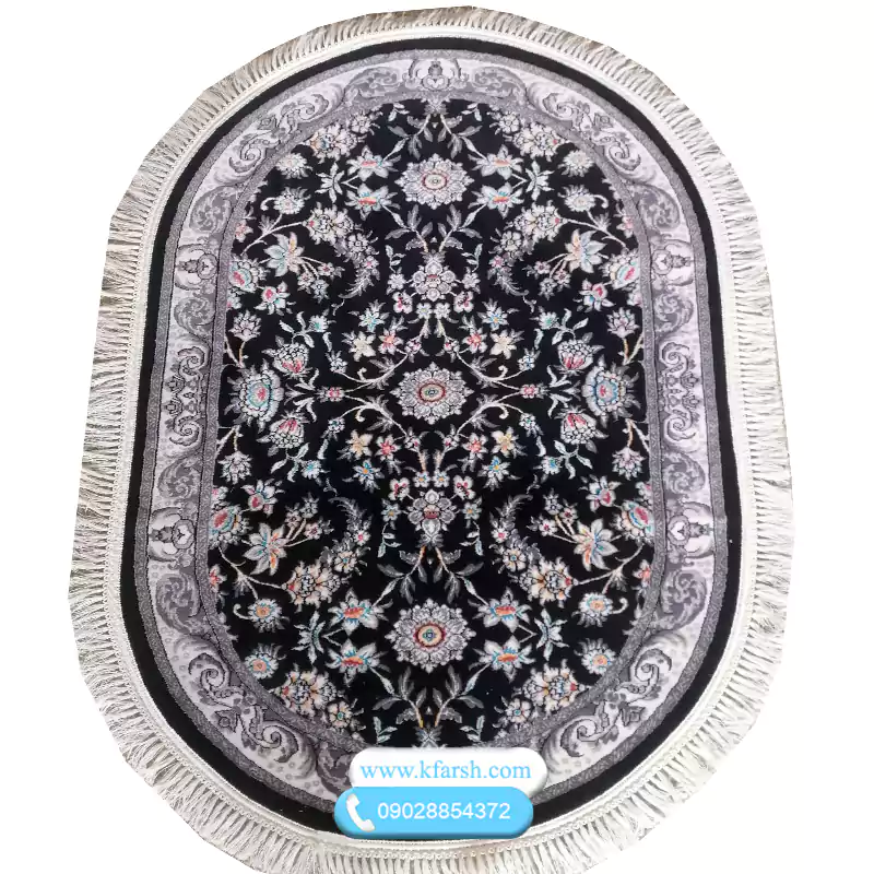 فرش بیضی طرح اوستا دو زمینه رنگی (سرمه ای و طوسی)